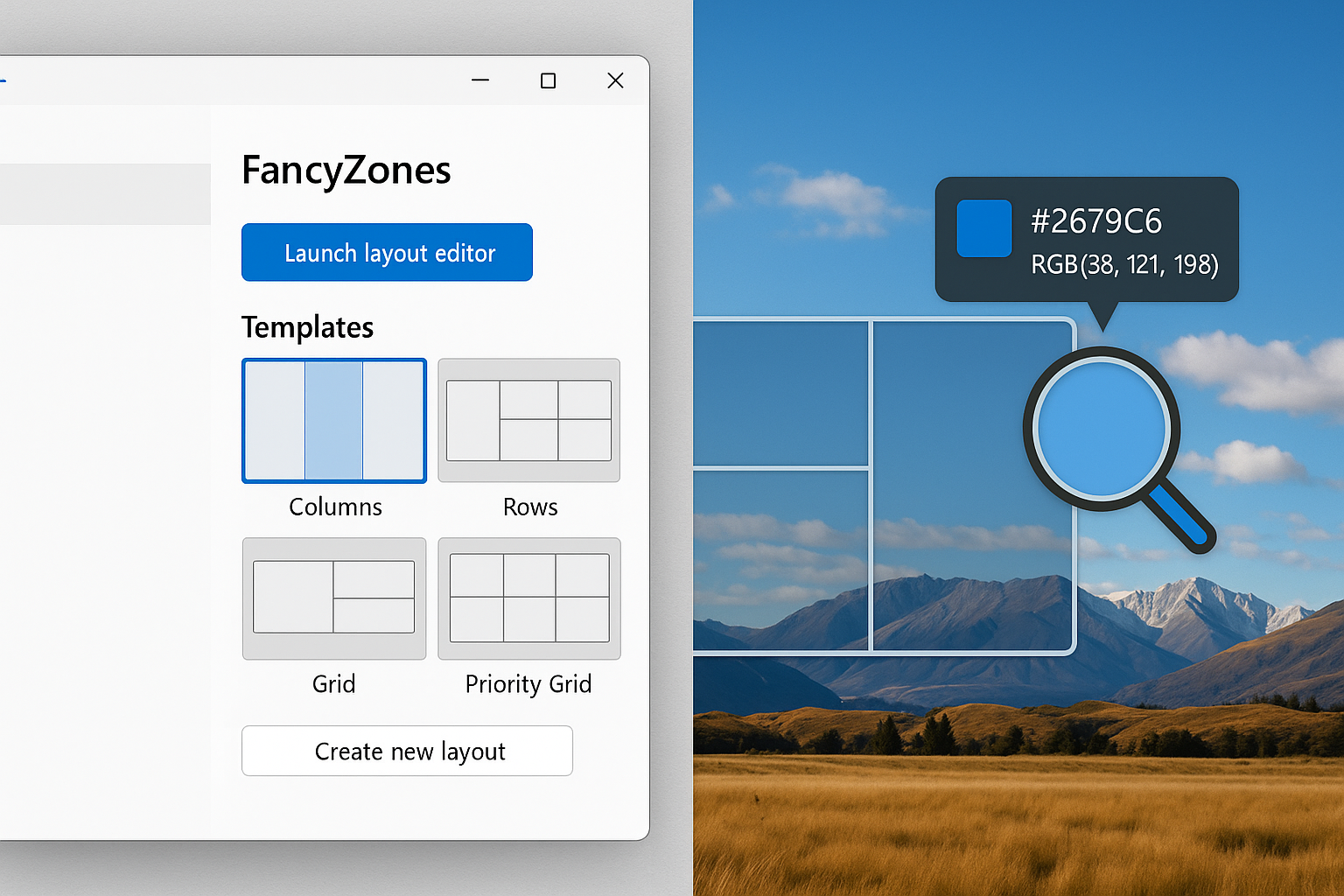 11. 9. FancyZones: создание собственных макетов рабочего стола