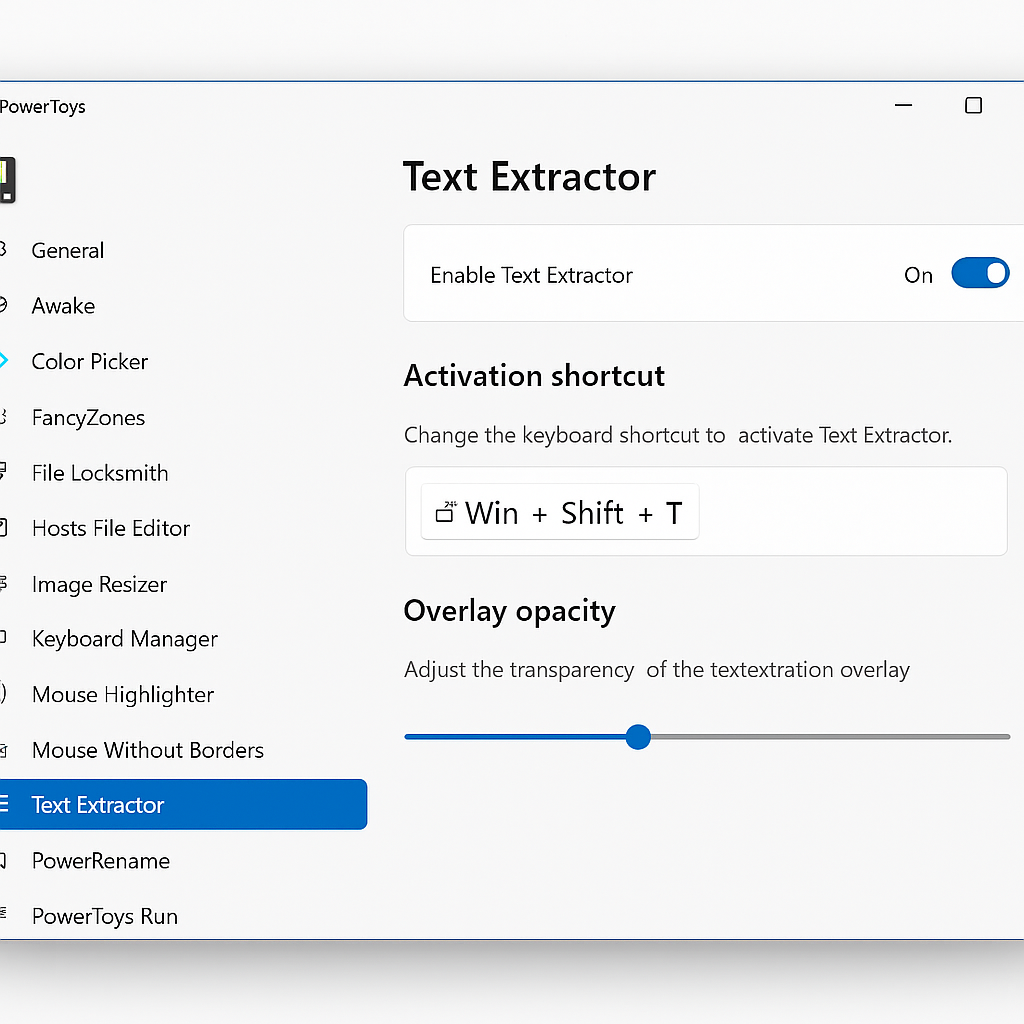 Хотелось ли вам когда-нибудь скопировать и использовать текст из изображения или видео? Функция Live Text от Apple позволяет извлекать текст из изображений и вставлять его в любое место в качестве редактируемого контента, так же, как и Text Extractor на ПК с Windows. Откройте вкладку Text Extractor в настройках PowerToys, чтобы включить эту функцию и изменить сочетание клавиш для её активации.