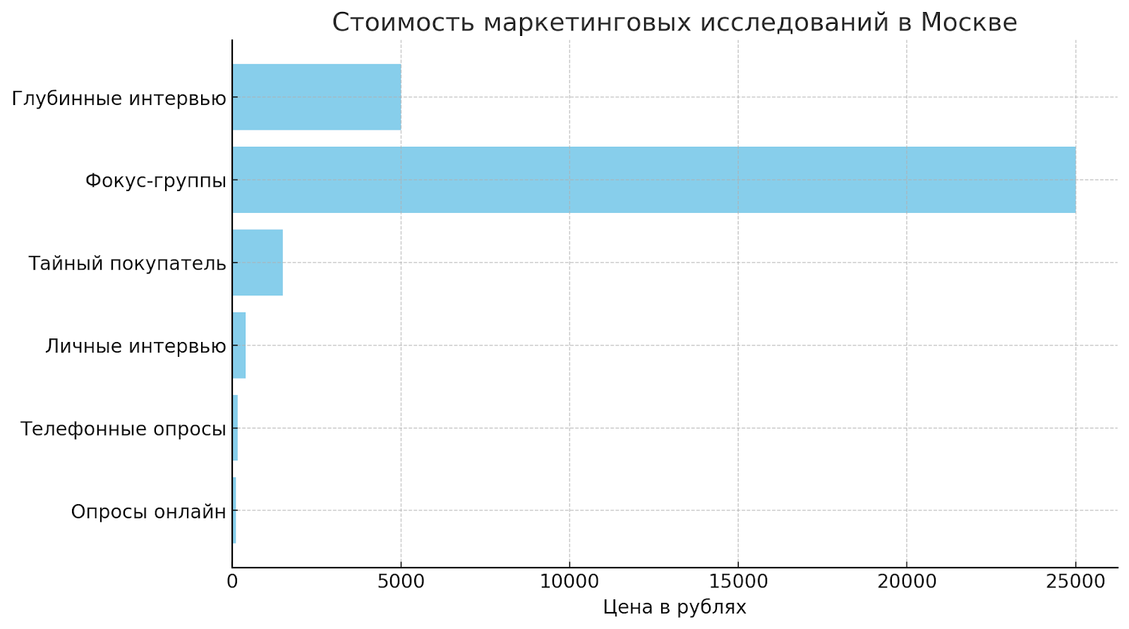 Основные ценовые диапазоны для маркетинговых исследований в России